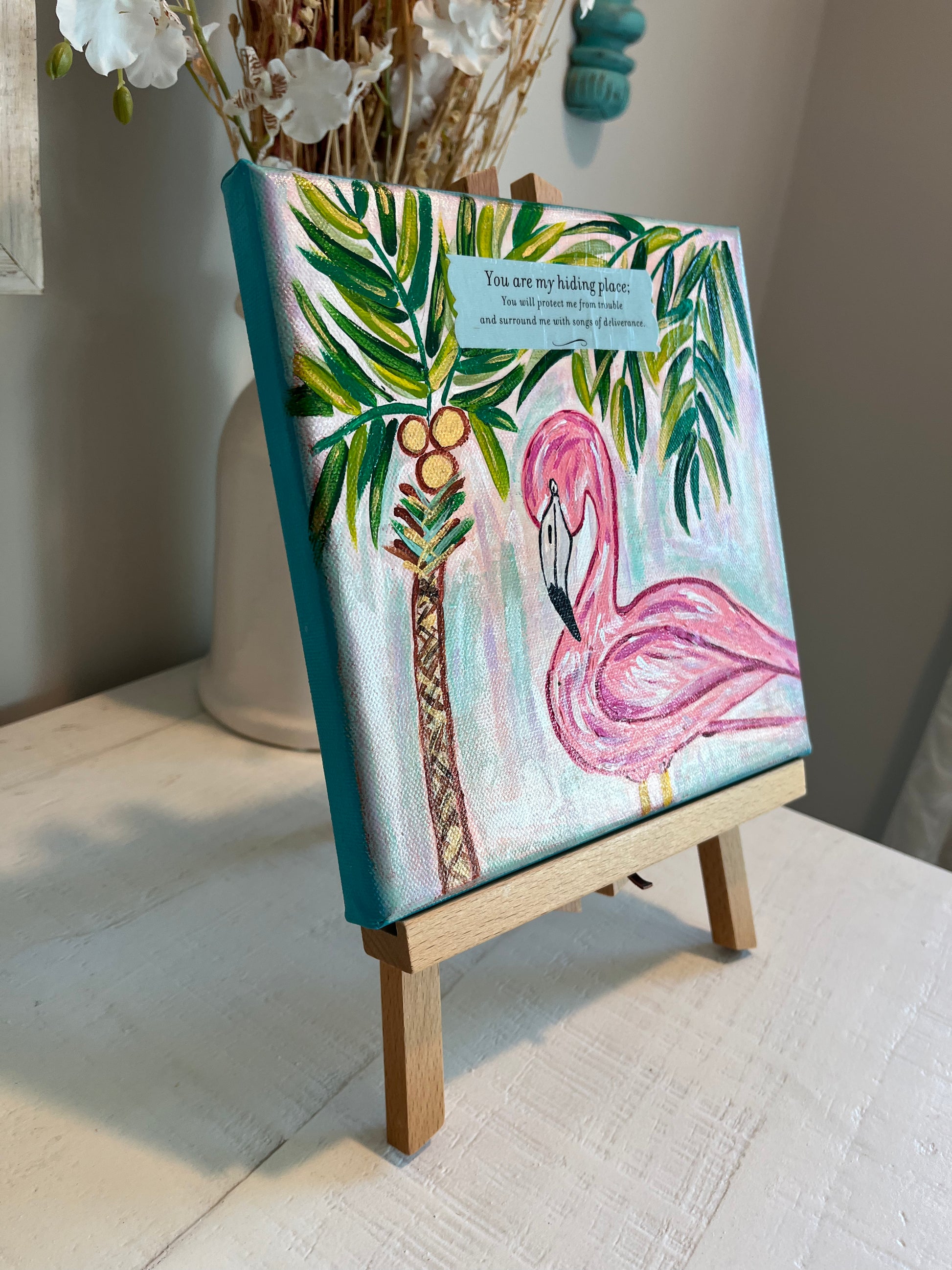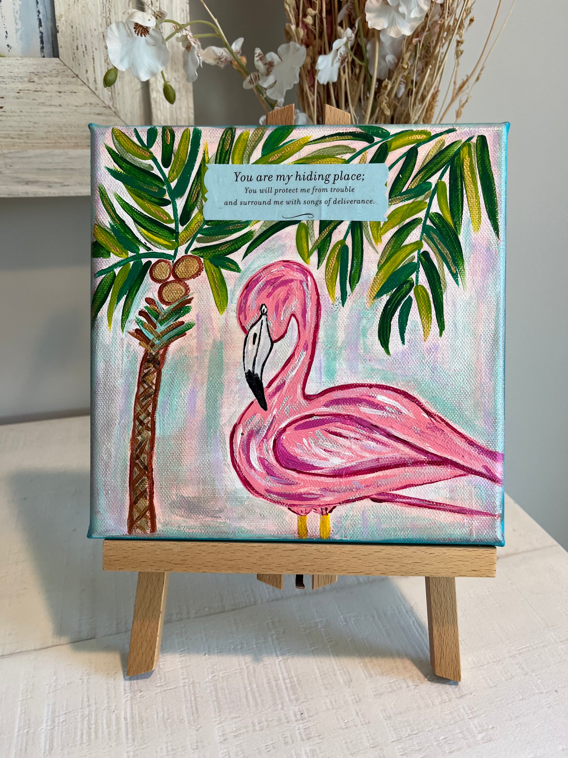 "Hiding Place" captures a vibrant blend of tropical imagery and vivid colors, featuring motifs like pink flamingos and palm trees. This expertly crafted collection evokes a lively, bright atmosphere, perfect for those seeking a refreshing and visually inspired experience. The design’s bold palette and natural elements create a unique sense of escape and tranquility.