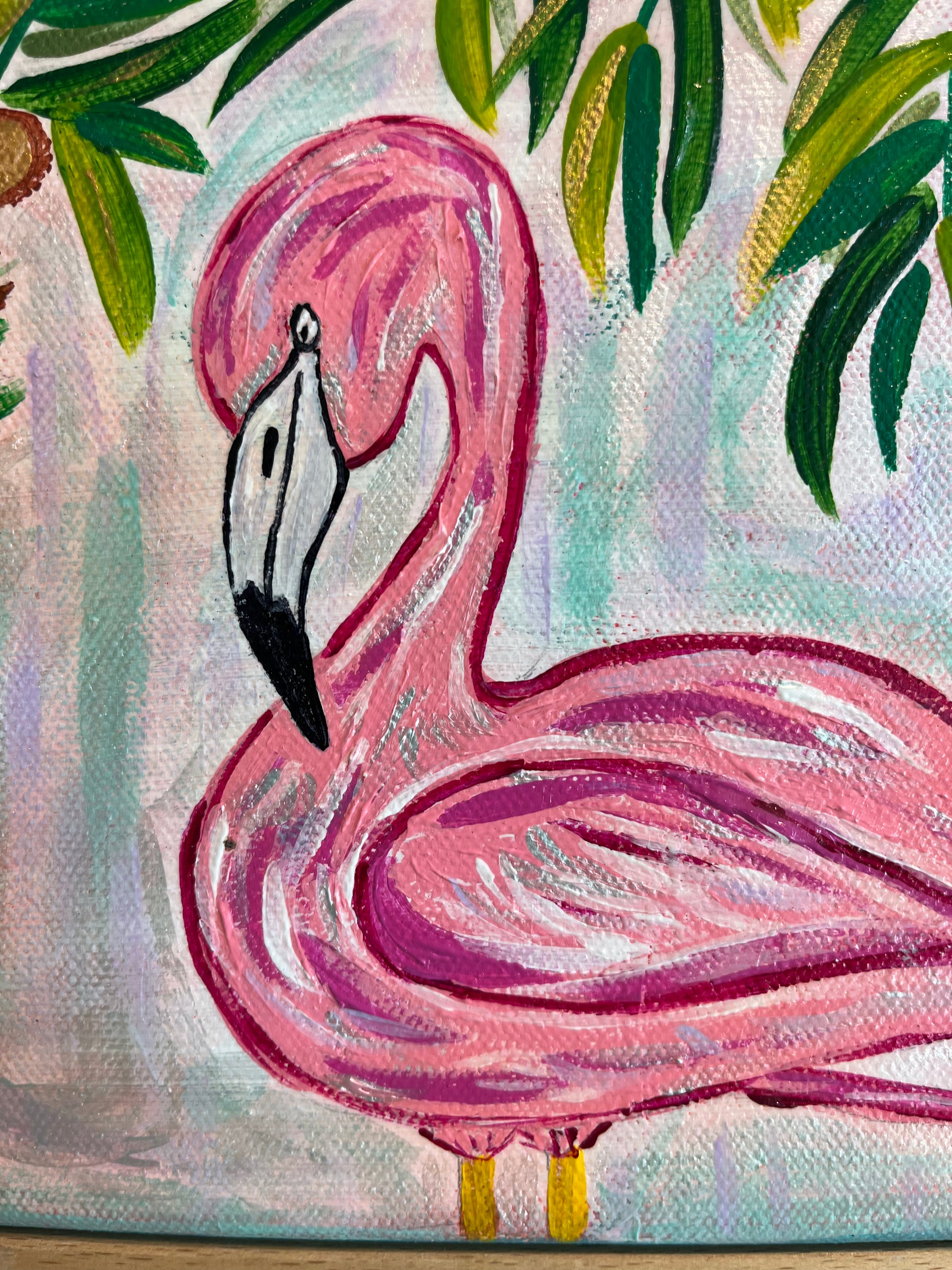 8" x 8" original acrylic painting on cotton canvas. Sealed with a clear coat of high gloss paint and primed with Gesso.