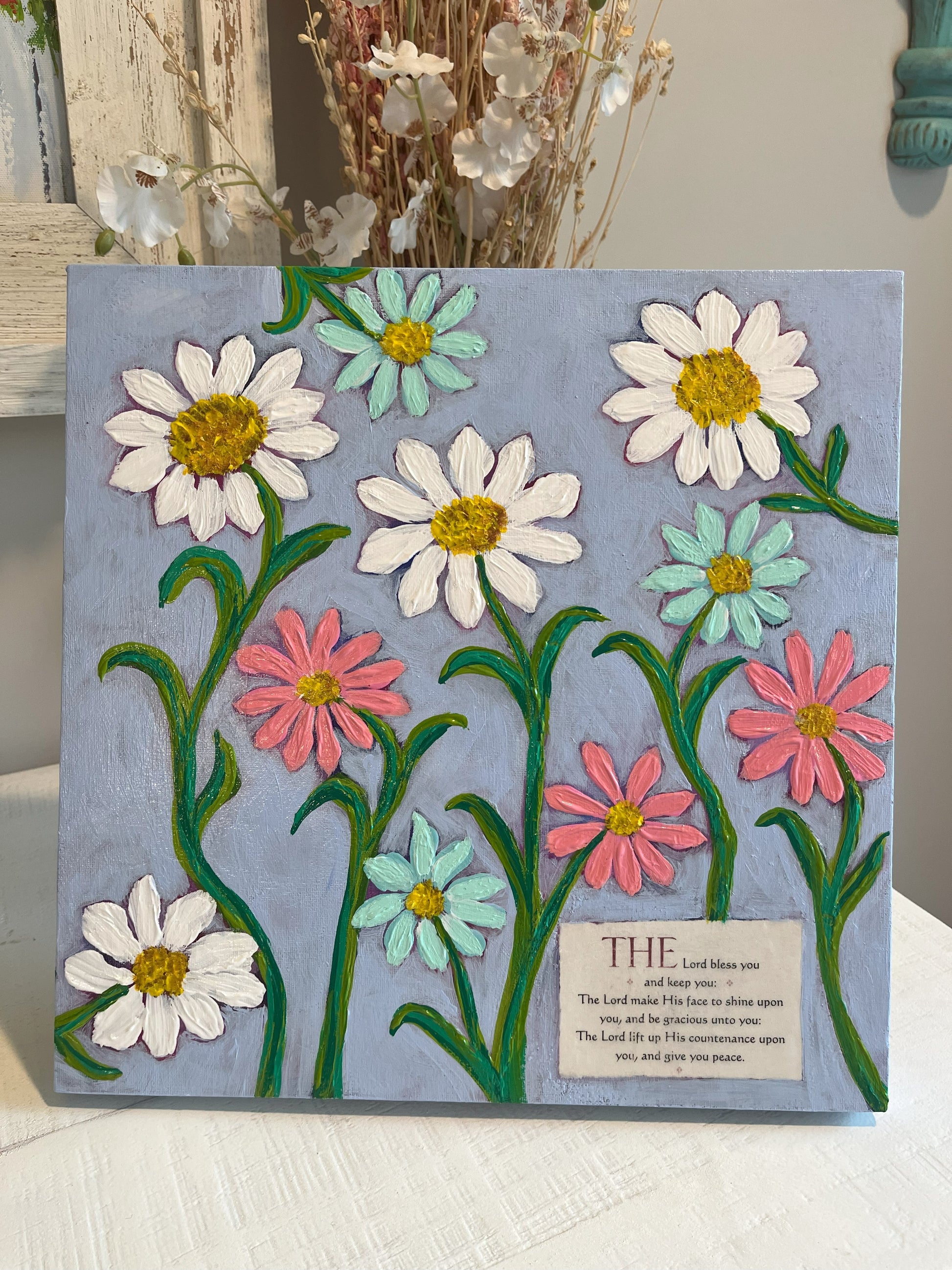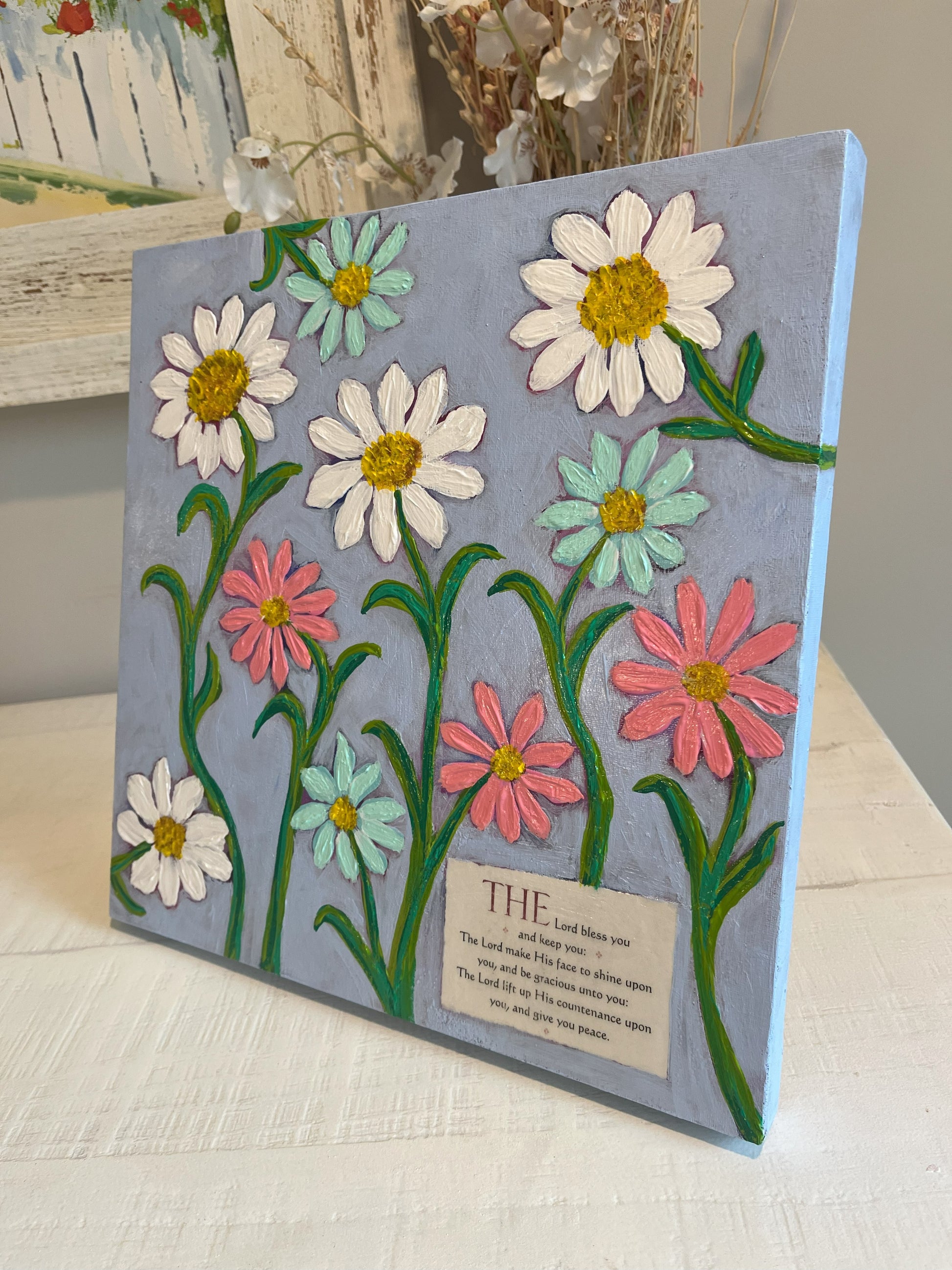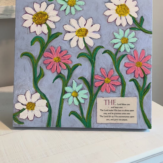 This beautifully designed product features the powerful and comforting scripture from Numbers 6:24-26 with a vibrant purple tie dye background. The delicate pink, white, and baby blue flowers add a touch of whimsy to remind you that the Lord blesses and keeps you always. Perfect for any room, this product will serve as a daily reminder of God's love and protection.